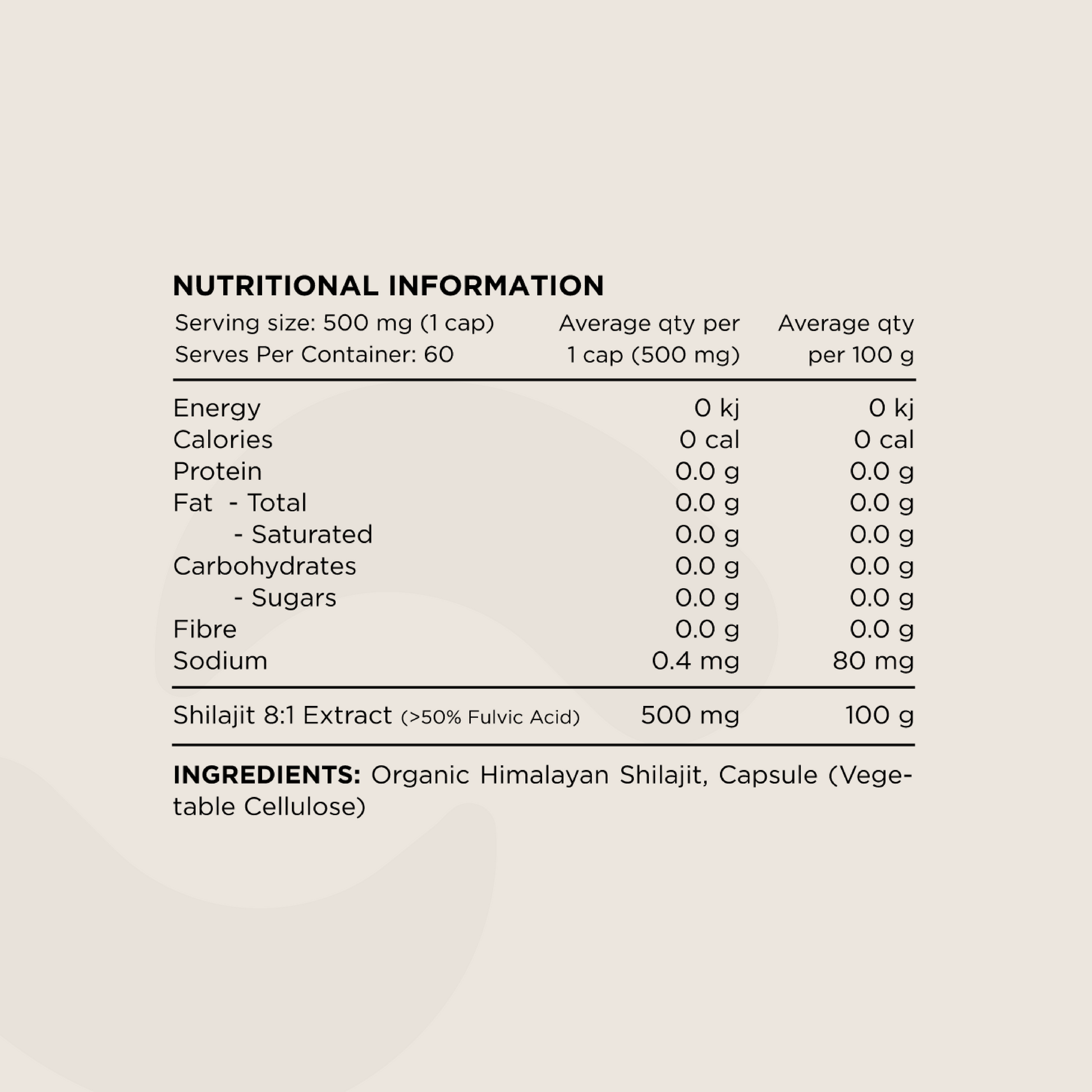 Originating in the Himalayan mountains, this compound is formed by the decomposition of ancient plant and microbial matter. This results in a rich mineral dense powder that contains more than 84 micronutrients.